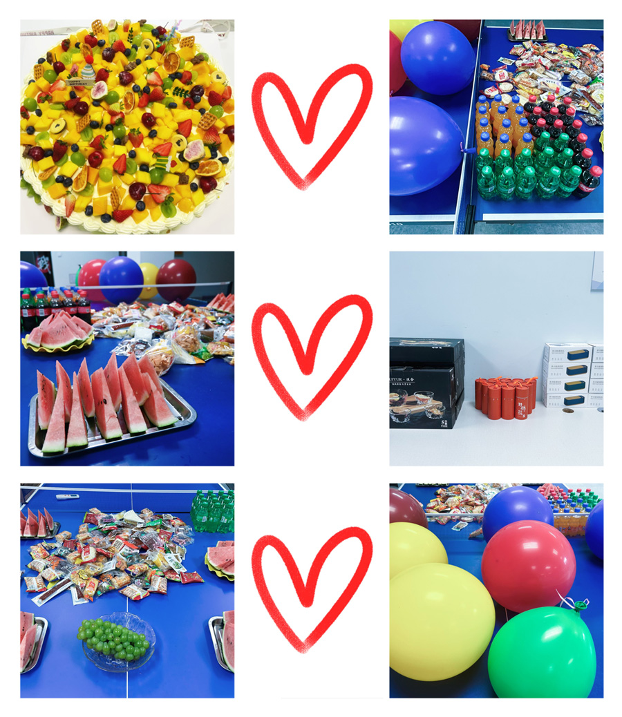 踏入活動現(xiàn)場,精心布置的空間瞬間讓人感受到濃郁的溫馨氛圍。長桌變身「快樂補給站」,琳瑯滿目的美食、沁爽的飲品與新鮮的水果有序擺放,宛如一幅誘人的生活畫卷;中心位置,承載著美好祝愿的生日蛋糕熠熠生輝,儀式感撲面而來。不僅滿足了員工的味蕾,更傳遞出企業(yè)對員工細(xì)致入微的關(guān)懷。