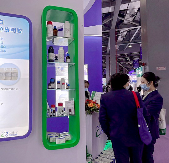 西寶生物自主研發(fā)的優(yōu)質(zhì)核心原料產(chǎn)品,廣泛應用于體外診斷(生化、酶免/發(fā)光、分子診斷、膠體金層析、熒光層析等平臺)、生物制藥、疫苗研發(fā)生產(chǎn)及科研領(lǐng)域。此次展會,西寶生物重點展示了水解白蛋白、酶解深水皮魚明膠和分子酶系列等新品,引起了客戶的濃厚興趣。