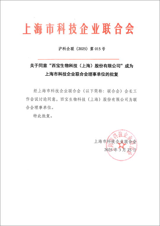 近日,西寶生物科技(上海)有限公司(以下簡稱“西寶生物”)喜訊連連。在上海市科學(xué)技術(shù)委員會(huì)的指導(dǎo)下,憑借持續(xù)創(chuàng)新能力,西寶生物順利通過國家高新技術(shù)企業(yè)重新認(rèn)定,并正式成為上海市科技企業(yè)聯(lián)合會(huì)理事單位。兩項(xiàng)閃閃發(fā)光的成就展現(xiàn)了西寶生物在生物科技領(lǐng)域的創(chuàng)新實(shí)力與產(chǎn)業(yè)影響力,也為長三角生物經(jīng)濟(jì)創(chuàng)新生態(tài)建設(shè)注入了新活力。