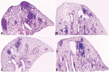 經(jīng)強毒結核分枝桿菌氣溶膠感染后的肺部組織病理學表現(xiàn)