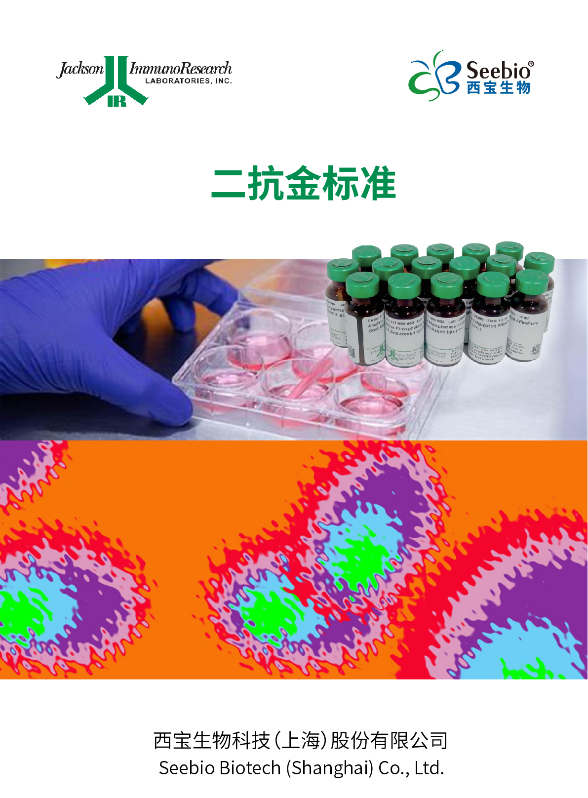 美國Jackson ImmunoResearch品牌致力于親和純化的二抗和純化的免疫球蛋白的生產及偶聯。提供眾多適用于免疫學實驗的具有種屬特異性的二抗品種,包括辣根過氧化物酶(HRP)、堿性磷酸酶、生物素標記的抗體及鏈霉親和素等,用于傳統的底物顯色及底物化學發(fā)光(ECL)的免疫印跡技術。同時可提供覆蓋紅外光譜范圍的多種染料標記二抗,適用于新的多色圖片采集處理系統。
