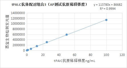 組合3:Anti tPAI.C antibody(貨號(hào):EKY1204C)包被羧基磁珠+Anti tPAI.C antibody(貨號(hào):EKY1205C)標(biāo)記堿性磷酸酶;
