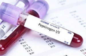 PG是胃蛋白酶的無活性前體,可分為PGI和PGII種亞型。PGI主要由胃體和胃底腺的主細(xì)胞和頸黏液細(xì)胞分泌,而 PGII除由胃底腺分泌外,胃竇幽門腺和近端十二指腸 Brunner腺亦可分泌。當(dāng)胃黏膜發(fā)生萎縮時,血清PGI水平和(或)PGI/II比值(PGR)降低。血清中約存在人體1%的PG,其血清水平可作為胃黏膜形態(tài)和功能狀態(tài)的標(biāo)志,聯(lián)合Hp檢測可識別出胃癌的高危個體。